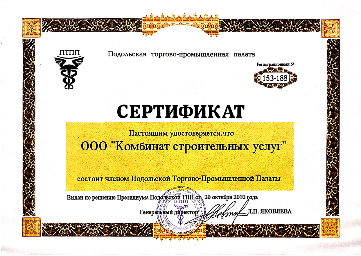 Член Подольской торгово-промышленной палаты и ТПП РФ № 153 188.