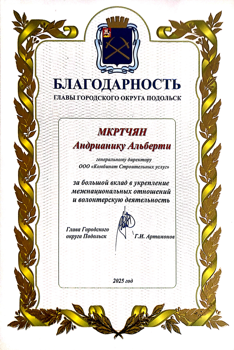 Генеральный директор ООО «Комбинат строительных услуг»
