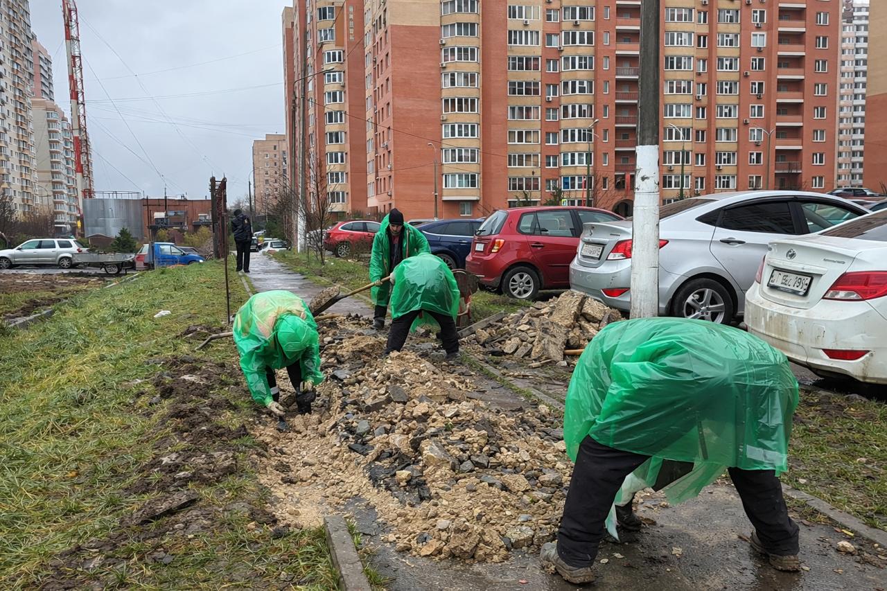 Выполнение работ по текущему ремонту: Устройство тротуара в г. о. Подольск, г. Подольск, ул. Марины Расковой