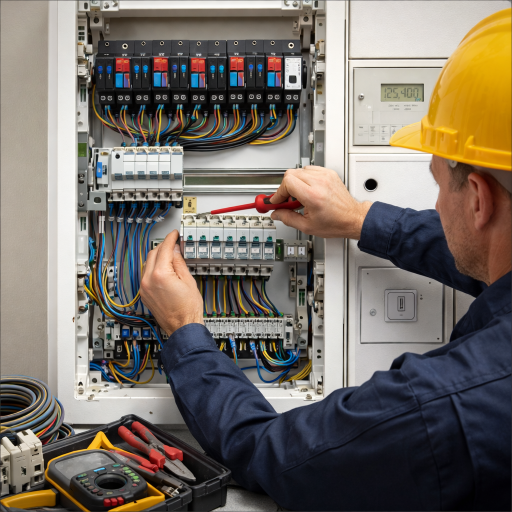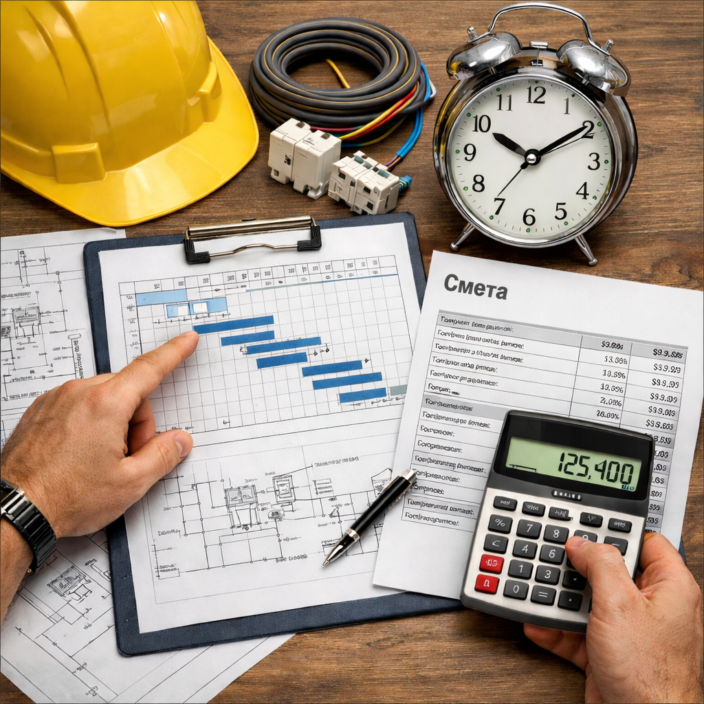Срок зависит от площади объекта, сложности схемы, количества линий, щитов и точек подключения. После оценки задачи мы называем реальные сроки выполнения работ, чтобы вы могли заранее понимать порядок и продолжительность работ на объекте.